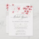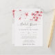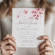 En modern elegant blommigt inbjudningskort för möhippan med blommar för vattenfärgskörsbär i rosa och modern kalligrafi på en handgjord papper struktur.