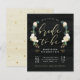 Elegant blommigt inbjudningskort för möhippa med "brud att vara" i ett handskrivet typsnitt med peonier, ro och löv med guld foil löv som bildar en krans runt den med vattenfärgad bakgrund i mörk. Perfekt för möhippor med trädgårdsteman i vår. Som en del av budgetvalet här på Zazzle, är dessa inbjudningar inte komar med kuvert och passar inte heller in i ett kuvert av standardstorlek. Den närmaste storleka är A6, men det kommer att finnas en lucka på ungefär en halv tum. Om du inte har något emot att det saknas snus kan du använda så allmänt tillgängliga A6-kuvert. I annat fall kan denna design överföras till ett standardformat 5 x 7 (som levereras med kuvert) med hjälp av designöverföringen verktyg. Som en ungefärlig guide skulle 100 inbjudningar till budgeten (inklusive en volymrabatt) kosta cirka 39 dollar medan 100 standardbelopp på 5 x 7 inbjudan inklusive kuvert skulle kosta cirka 135 dollar. Ditt val kan variera beroende på Zazzles tillgängliga promokoder, försäljning på hela platsen eller prisförändringar.