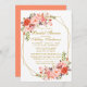Vattfärgsfärgkoral Blommigt Guld Geometric Ram Inbjudningskort för möhippan-kort