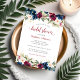 Detta vackra inbjudningskort för möhippan har vattenfärgblommor i marinblått, vitt och burgundärt med grönt löv. Baksidan har blommigt gräns på fast marin blå bakgrund. Enkel att anpassa genom att klicka på "Anpassa".