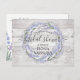 Bekvämt designade vykort i inbjudningskort för möhippan har ett lätt trätryck med blomkrans av lavendel blommigt. Klassisk och skriptbaserad mörk-grått-typografi. Berätta om du behöver hjälp eller har speciella förfrågningar.
