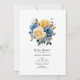 Blått och guld blommigt inbjudningskort för möhippan. Perfekt för varje tema eller trädgårdsbröllop.