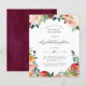 Blommigt inbjudningskort för möhippa med burgundsmarsala och vattenfärgade blommor av rosa med grönt. Som en del av budgetvalet här på Zazzle, är dessa inbjudningar inte komar med kuvert och passar inte heller in i ett kuvert av standardstorlek. Den närmaste storleka är A6, men det kommer att finnas en lucka på ungefär en halv tum. Om du inte har något emot att det saknas snus kan du använda så allmänt tillgängliga A6-kuvert. I annat fall kan denna design överföras till ett standardformat 5 x 7 (som levereras med kuvert) med hjälp av designöverföringen verktyg. Som en ungefärlig guide skulle 100 inbjudningar till budgeten (inklusive en volymrabatt) kosta cirka 39 dollar medan 100 standardbelopp på 5 x 7 inbjudan inklusive kuvert skulle kosta cirka 135 dollar. Ditt val kan variera beroende på Zazzles tillgängliga promokoder, försäljning på hela platsen eller prisförändringar.