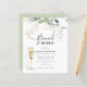 Skönhet och roligt med den här bruch- och bubblande Möhippan champagne-luncheon-inbjudan designad med viskpigt mjukt eukalyptus grenar, gyldade löv från guld och en grönt baksida på baksidan av kortet. Anpassa enkelt med briden till namn och annan viktig information.