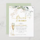 Skönhet och roligt med den här bruch- och bubbelfärgade Möhippan champagne-luncheon-inbjudan designad med viskpy mjuk eukalyptus grenar-gyldade guld-löv och en grönt baksida på baksidan av kortet. Anpassa enkelt med briden till namn och annan viktig information.