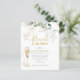 Skönhet och roligt med den här bruch- och bubblande Möhippan champagne-luncheon-inbjudan designad med viskpigt mjukt eukalyptus grenar och gyldat guld löv. Anpassa enkelt med briden till namn och annan viktig information.