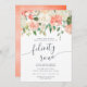Eleganten och den moderna blommigten inbjudningskort för möhippan har en bukett av mjuk pastellfärgad ro, peonier och vattenskogar i persiko- och krämnyans, med lush grönt botaniska löv och eukalyptus. Anpassa med din möhippa i eleganten med rökfria blå bokstäver som accentueras med handskriven kalligrafi i stil.