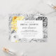 Det här moderna tropiska vågrät inbjudningskort för möhippan är perfekt för ditt sommarstuga. Designad med klassisk blommigt av gult i eleganten som kommer ut från grått-kustgrej, inklusive handflatan löv och fern. Med alla dessa färgstarka vattenfärger blommor och grått löv, är du säker på att den bohemiska stranden känner att du är tittar för.