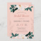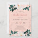 Modern chic inbjudningskort för möhippan med dammig kalligrafi av ro och rosa och vita blommor med emerald grönt botanical grey löv. ++++++ Lämpligt för att elegantens romantiska brud ska vara firande.