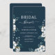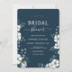 Vattenfärgade bomullsblommor och eukalyptus-gröntar. Blåblå Inbjudningskort för möhippan. Firar med den här söta samlingen
