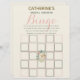 Ha roligt med familj och vänner på din möhippa med denna vackra möhippa för elegant av blommigt i klassiska vintagar, bingo-spel i lakan. De här bingokorten för möhippa har mjuk färg av rosa och krem. Det här bingo-spelet för blommigt möhippa kan vara personlig med ditt namn och datum för din händelse.