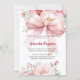 En vit elegant, dekorerad med stor rosa och rosa blommor. Anpassa och lägg till information om namn och party. Bakåt: mjuk bakgrund för rosa.