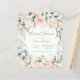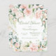 Elegantens vita bakgrund med rosa & elfenben ro blommigt vattenfärg ram och den blomstrande grönmannen för löv och viner kring finare som samordnar grönten inbjudningskort för möhippan på en papper lakan för dem som har en budget. Detta är en alldeles vacker inbjudan. Utebliven budget. Perfekt möhippa inbjudan för vilken säsong som helst som gäller bröllop.