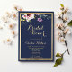 Elegant marinblått, guld och rosa blommigt Bröllop Inbjudningskort för möhippan. Den här botaniska rosa blommigt Bröllop lyxfest är perfekt för alla klassofistikerade och sofistikerade glam-flickor. Den här designen är perfekt för en händelse i trendig och snyggt party. Anpassa den här designen med egen information om meddelande och personlig. Alla designer skrivs ut.