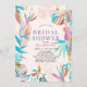 Detta sjudande och moderna inbjudningskort för möhippan har tropiska löv och en papegoja/parakit i färgstarkt vibrerande färg. Anpassa den efter dina behov. Du hittar matchande produkter i min butik.