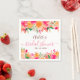 Modern vattenfärgsnapkin med blommigt med låg fetstil och möhippa med ett skript av skarp orange, persika, rosa och grönt, bouquet och elegant.