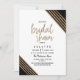 En modern lyxvit, marinblå och guld innehåller en elegant, trendig guld, vit och marinblå geometrisk design med tryckt silver handskriven typografi. Det här glam bröllop Inbjudningskort för möhippan är perfekten för alla brider- och rummets Bröllop-händelser. Anpassa den här designen med din information och ditt monogram först.
