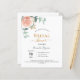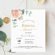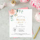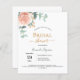 En vit chic bakgrund. Dekorerad med en blommigt för guld och rosa, blomma från ro och vattenfärgad eukalyptus löv, sprig, grönsak och faux guld sprig. Anpassa och lägg till bridens namn för att vara och närmare party. Svart och guldfärgad färgad brev. 1 lakan = 1 inbjudan tryckt kant till kant.