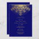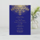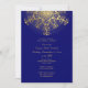 Guld snöflummel på blåvinter-bröllopet inbjudningskort för möhippan som har en gyllene snöflake på blå bakgrund. Denna personlig är en komplett mall för anpassade och ingår i en perfekt med bröllop för en vinter eller jul i bröllop.