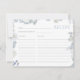 Tittar du att det ska finnas dammiga blåa blommigtar i inbjudan? Dessa utskrivbara blåblommereceptkort är lätta att använda för anpassade och perfekt till en duschkammare som ge de nyfödda favoritrecepten från närmaste och djupaste plats. Utformningen av ett blått recept i MARLAIS har en klassisk utformning med vit bakgrund och vattenfärgade vilda blommor i pastellskuggor av dammigt blått, vitt och grönt, med klassiskt serif typsnitt i grått och blått för att öka det visuella intresset för möhippans -recept i blåa blommor.