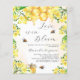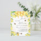 En vit och guldfärgad bakgrund med snyggt. Dekorerad med humla, smälter honung och honungskaka med blommigt, blommor och honung burk i gult. Med texten: Kärlek är i Bloom skrivet med ett modernt handskript i stil. Anpassa och lägg till namn i bruden. 1 lakan = 1 inbjudan tryckt kant till kant.