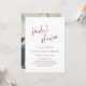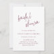 Elegant typografiskt stil inbjudningskort för möhippan med enkel och minimal layout med en kombination av ett klassiskt serif-teckensnitt och en modern handskriven kalligrafi. Baksidan har ditt favoritfoto. Temat färg är hallon/burgundi och kan ändras i designredigerande verktyg.