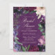 Romantiska blommor i rik burgundi, mild lilak, djup äggplants lila och pinkaktigt orkid par med modernt botaniskt grönt, t.ex. ferns och eukalyptus. En djup, eggplants lila vattenfärgsbakgrund binder allt tillsammans med elegantens typografi i dessa romantiska inbjudningskort för möhippa.
