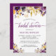 Guld Glitter Plum Lila Blommigt Inbjudningskort för möhippan.