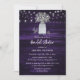 Den vackra anpassningsbarna Rustic lila blommigt inbjudningskort för möhippan med baby utandningsblommor inuti en mason burk mot en lingbakgrund som är försedd med ljus. Anpassa enkelt det här söta lila inbjudningskort för möhippa med din händelseinformation.