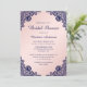 Elegant navy blue och inbjudningskort för möhippa med marint blått blommigt snöre och ett elegant-skriptteckensnitt på bakgrund. Anpassa enkelt onlinen. Matchningsartiklar som är tillgängliga för att komplettera dessa marinblå och vintage inbjudningskort för möhippa.