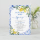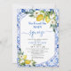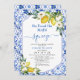 Pokttano Main Squeeze Inbjudningskort för möhippan hittade sin huvudsakliga klämning inbjudningskort för möhippan i Medelhavet vid stil vid Pokttano. Citrontemat inbjudningskort för möhippan har några citroner, vita blommor, ram och blå och vit bakgrund.