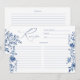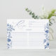 Den här Möhippan för Blå Blommigt Recipe har en vintagens blommdesign och en klarfärgad kalligrafi i blått mot en vit bakgrund.