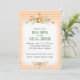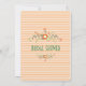 Det rundade hörnet inbjudningskort för möhippan har persikor och oliv grönt blommor och löv. Bakgrunden är ett persiko-vågrät rand mönster. Med anpassade kan du lägga till duschinformation. Inbjudan är perfekt för vår eller sommarens möhippa.