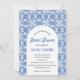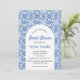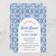 Portugisiska plattor, Medelhavet, båge, blått, sommar, inbjudan till mönster. Elegant, vacker, inbjudningskort för möhippa. Hand målade vattenfärgsblånät själv. Anpassa den med dina detaljer.
