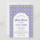 Portugisiska plattor, Medelhavet, båge, blått, sommar, inbjudan till mönster. Elegant, vacker, inbjudningskort för möhippa. Hand målade vattenfärgsblånät själv. Anpassa den med dina detaljer.