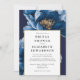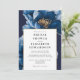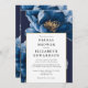 Elegantens marinblå och guld blommigt inbjudningskort för möhippan kan vara personlig med dina uppgifter i modern typografi och registeruppgifter i motsatt riktning. Designad av Thisisnotme©