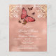Budgeterad Ro Guld Butterfly Blommigt Inbjudningskort för möhippa har en ro guld shimmer-bakgrund accentuerad med fjärilar och ornera blommigt accents med din Inbjudningskort för möhippan-information i mitten. Anpassa genom att redigera texten i textrutorna. Designad för dig ©Evco Studio www.zazzle.com/store/evcostudio