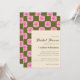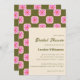 Cute Retro Boho Checkerboard Flower Grönt Rosa Inbjudningskort för möhippan