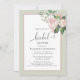 Har du en brud som främjar en minimal design? Den här inbjudan är perfekt. Den underskattade sidans grönt och vita bakgrund accentueras med rosa gräns, vattenfärgblommor och anpassningsbarnas skripttypografi.