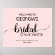 Den här välkomstposter möhippan för rosa för kalligrafi är perfekt för en möhippa för elegant. Utformningen har ett romantiskt och sött, flytande, kursivt teckensnitt på en vacker och känslig bakgrund för rosa av ballett. Anpassa poster till namn på den brud som ska visas samt datum och plats för möhippan.