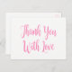 Skicka tack och kärlek till vänner och familj med detta söta vykort för rosa och vit typografi "tack med kärlek". Tack för rosa-kort är perfekt för * bröllop, möhippor, förlovningar * Vänlighet * uppskattning för gåvor * företag * papperskorgar - figurera några kort med ett sött band. Rulla ner om du vill visa andra guld- och vita produkter som du kan använda.