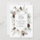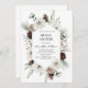 Rustic Winter Helgdag Inbjudningskort för möhippan med vackra vinterblommigtar som accentueras med gräs-koner och evergreen. Vår mall av hög kvalitet gör det så enkelt för dig att anpassa din inbjudan. Inbjudan ingår i en samling.