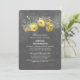 Vintage inbjudningskort för möhippan med gul ros och liten utandning av grenar. Perfekten Chalkboard inbjudan för romantisk möhippa med chic-dekanter i land