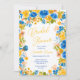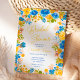 Elegantens moderna sommarblått och gula blommor-handmålade vattenfärgstryck med möhippa av söt vild och penselmang med modern kalligrafi-typografi , perfekt för Medelhavsområdet, italienska och europeiska vårar