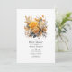 Solnedgång/pulveriserad guld blommigt inbjudningskort för möhippan med varmt beige, en klocka av gult och centrifugera guld. Idealisk för ett trädgårdsbröllop.