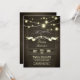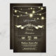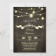 RUSTIC LAND INBJUDNINGSKORT FÖR MÖHIPPA med brännvinsbakgrund, mousserande sträng ljus och snyggt vintage western typografi med en banderoll.