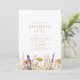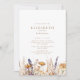 Vit bakgrund. Vattenfärgad torkad Blommigt Inbjudningskort för möhippan. Guld text. Neutralt.