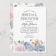 Elegant bröllop inbjudningskort för möhippa med en klassisk vit bakgrund, en vattenfärgad visning av pastellblommor och subkutenter och en brudens sida snyggt-mall som är enkel att anpassa.