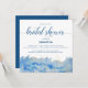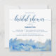 Denna elegant och snygga design är handmålade vattenfärger i ljusblå, klassisk blått och marint blått kompletterade med guld (simulerad folie). Den abstrakta utformningen liknar kustlinjen, perfekten för en strand-, havs- eller nautiska temathändelse. Texten är i klassiskt blått och kan anpassas för möhippan.