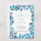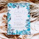 Något blått innan jag gör blommigt vattenfärgen inbjudningskort för möhippan, med handmålad monokrom blåa blommor i ljusblå och indigo med elegant-manusjus.